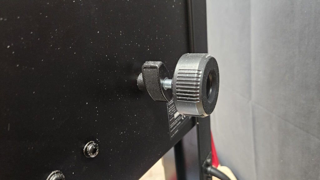 Deux sécurités de capots coupent l’alimentation si les portes ne sont pas verrouillées. L’extracteur de poussières n’est pas inclus, donc prévoyez un raccord d’aspiration pour préserver la visibilité du trait et la propreté de l’atelier.