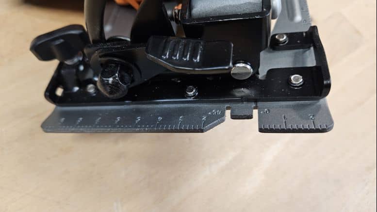 - Réglage de profondeur de coupe manuel, sans graduation (un mètre ruban peut aider pour plus de précision)
