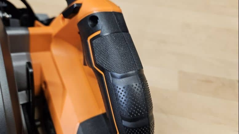 La poignée secondaire assure une bonne prise à deux mains et contribue à guider l’outil de manière stable. C’est un vrai plus pour travailler en sécurité, surtout sur des coupes longues.