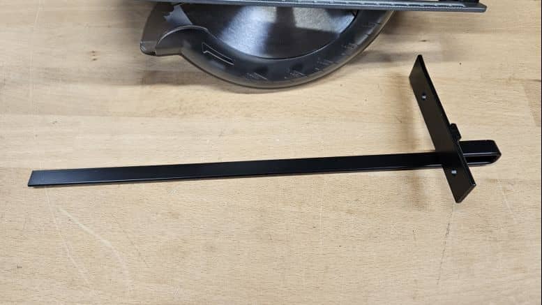 Une encoche sur la semelle permet de visualiser l’alignement de la lame avec un trait de coupe. L’outil est également livré avec un guide parallèle, pratique pour suivre un bord droit.