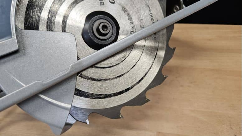 Avec un poids de 4,8 kg, la scie est relativement lourde. Mais dans le cadre d’une scie circulaire de ce calibre, c’est acceptable puisque le poids repose en grande partie sur le matériau. La poignée principale est bien conçue, avec un revêtement grip agréable et une gâchette de sécurité bien placée.