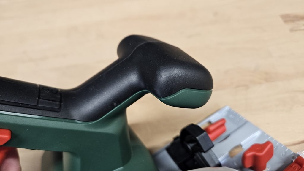 Sur cette scie, le moteur est à charbon, cela veut dire que l’on ne profite pas des atouts d’un Brushless (rendement, autonomie, longévité), mais cela contribue malgré tout à maintenir un prix attractif. Pour ce qui est de la vitesse à vide, ce moteur peut atteindre les 4300 tr/min, ce qui offre des coupes nettes sur des panneaux et bois massif.