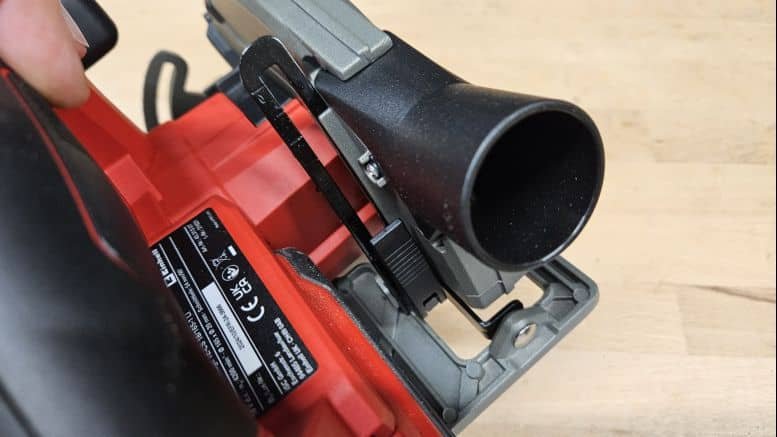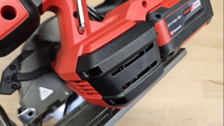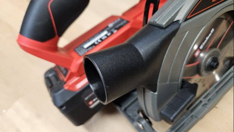 Comme souvent chez Einhell, un conduit d’évacuation des copeaux est intégré. Il est possible de le raccorder à un aspirateur pour améliorer la propreté de la zone de travail, ce qui est toujours appréciable sur les coupes longues ou en intérieur.