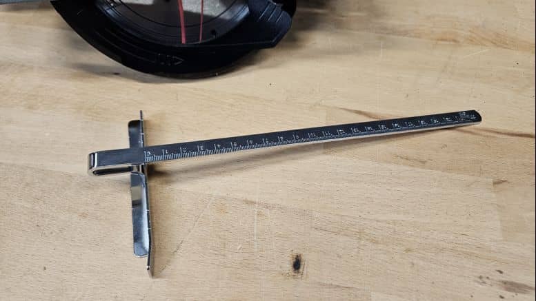 À l’arrière, un second levier permet d’ajuster la profondeur de coupe selon les besoins, même si l’absence de graduation précise impose l’usage d’un mètre pour les réglages fins. Une encoche de visée est présente sur la base pour bien suivre les traits de coupe, et un guide parallèle est fourni pour améliorer la régularité des découpes le long d’un bord.