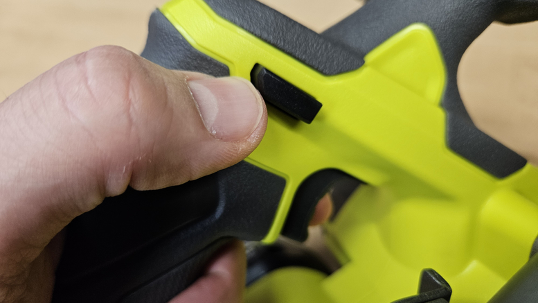La prise en main est plutôt bonne grâce à deux poignées recouvertes de grip. La poignée principale est ergonomique, avec une large gâchette et un bouton de sécurité bien positionné. La poignée secondaire offre un bon appui pour guider la scie avec précision.