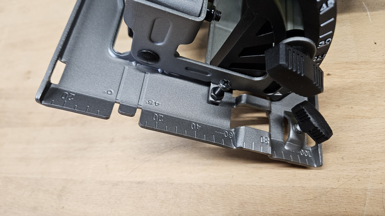 - Réglage de l’angle de coupe jusqu’à 45° via une vis sur l’avant