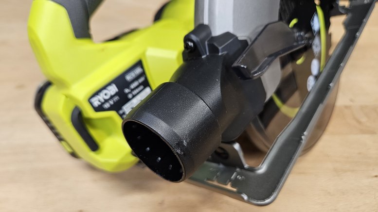 Comme sur beaucoup de modèles de cette catégorie, cette scie circulaire est équipée d’un système d’évacuation des poussières, ce qui permet de pouvoir travailler plus proprement et surtout d’offrir une meilleure visibilité sur la zone de coupe. Un conduit est même prévus afin de pouvoir raccorder un aspirateur de chantier.