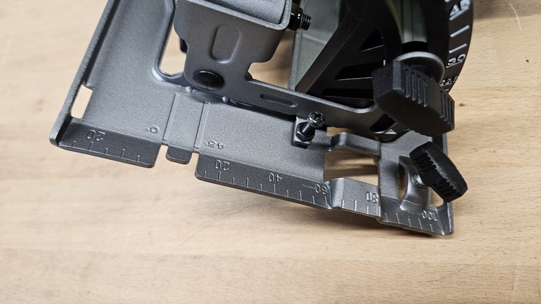 - Réglage de l’angle de coupe jusqu’à 45° via une vis sur l’avant