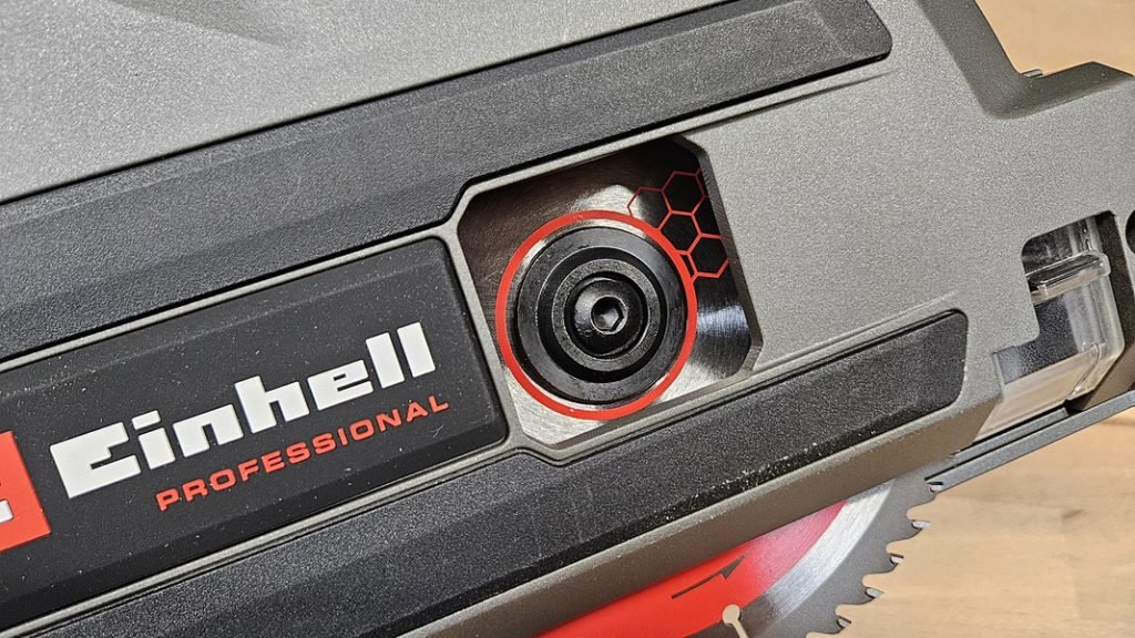 Son moteur brushless de dernière génération (gamme Einhell Professional) permet à la lame de tourner à 5000 tours/minute, une vitesse élevée pour une scie sans fil. Cela se traduit par des coupes nettes et rapides, même dans du bois dur. Elle est donc capable de couper jusqu’à 56 mm à 90° et 42 mm à 45°, ce qui la rend parfaitement adaptée aux travaux de menuiserie courants, y compris les plans de travail épais.