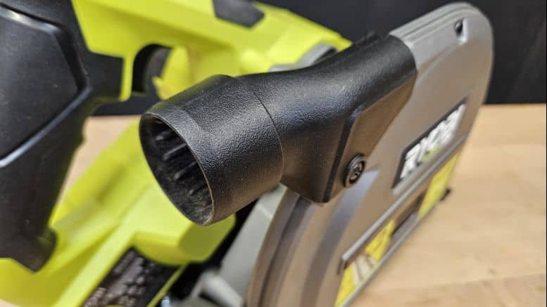 Un conduit orientable permet de guider les résidus de coupe. Mais je vous recommande fortement de brancher un aspirateur afin d’obtenir un chantier net, surtout lors de coupes longues ou dans du MDF.