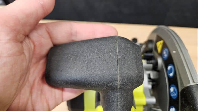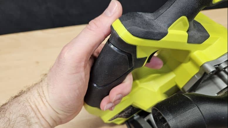 L’ergonomie est un des points forts de ce modèle. Les deux poignées sont recouvertes d’un revêtement grip épais, très confortable à l’usage. La gâchette de mise en marche tombe naturellement sous l’index, et le bouton de sécurité est bien positionné sous le pouce.