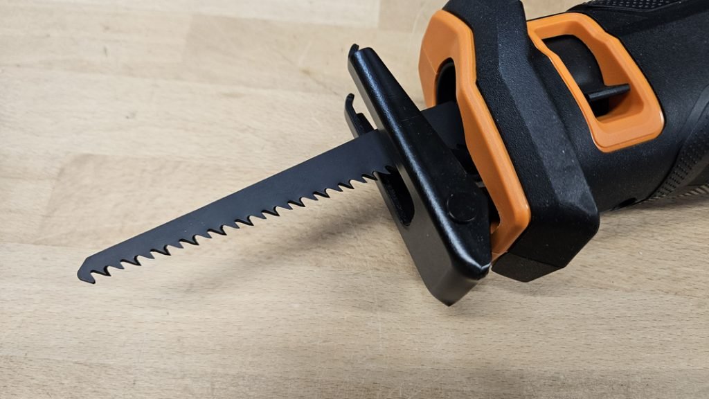 Cette scie sabre propose un variateur de vitesse intégré à la gâchette, qui permet de s’adapter à chaque matériau sans effort. Le sabot avant est orientable, ce qui facilite le travail sur des surfaces irrégulières ou dans des zones difficiles d’accès.