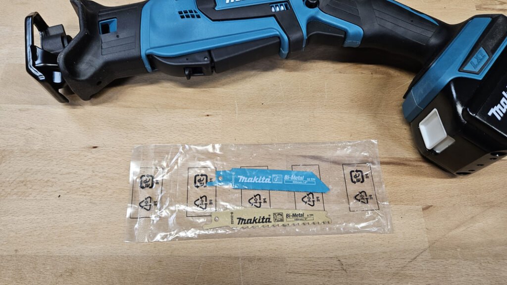 La Makita DJR183Z est le plus souvent proposée en version nue, donc sans batterie, ni chargeur. En revanche, le pack comprend généralement deux lames courtes, une pour le bois et une pour le métal. Pour exploiter pleinement la machine, il peut être judicieux de prévoir une lame bi-matériaux de qualité, surtout si vous coupez régulièrement des palettes ou des supports avec clous. Comme toujours avec une scie sabre, la lame joue un rôle énorme sur la vitesse de coupe, la propreté et le confort.