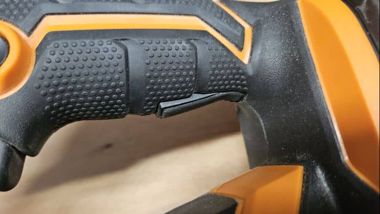 Avec ses 2,1 kg (sans batterie), cette scie sauteuse est un peu plus lourde que la moyenne, mais cela reste acceptable pour une machine posée sur un support. La poignée est bien recouverte de grip antiglisse, y compris sur le pommeau pour un travail à deux mains. La gâchette et les boutons de commande sont bien positionnés, et le verrouillage de la gâchette est un vrai plus pour les coupes longues.