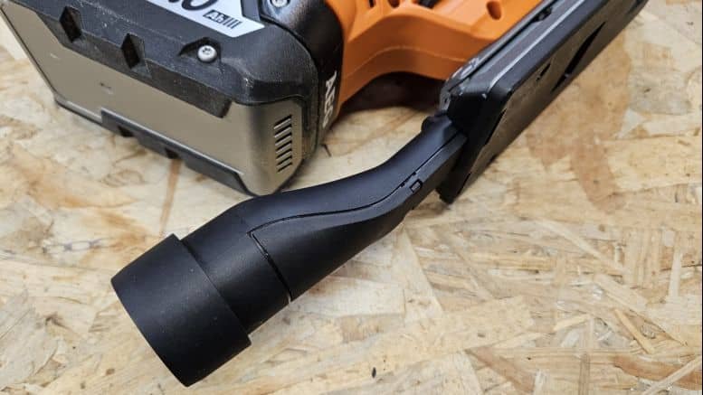 Un adaptateur pour aspirateur est fourni pour limiter la poussière lors des travaux en intérieur.