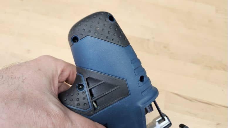 Avec un poids de seulement 1,36 kg (sans batterie), la scie GST 12V-70 se manipule aisément. Son format à pommeau, associé à une poignée fine et bien texturée, garantit un excellent contrôle, même en coupe inversée. L’absence de gâchette au profit d’un bouton marche/arrêt unique améliore le confort en réduisant la fatigue lors d’usages prolongés.