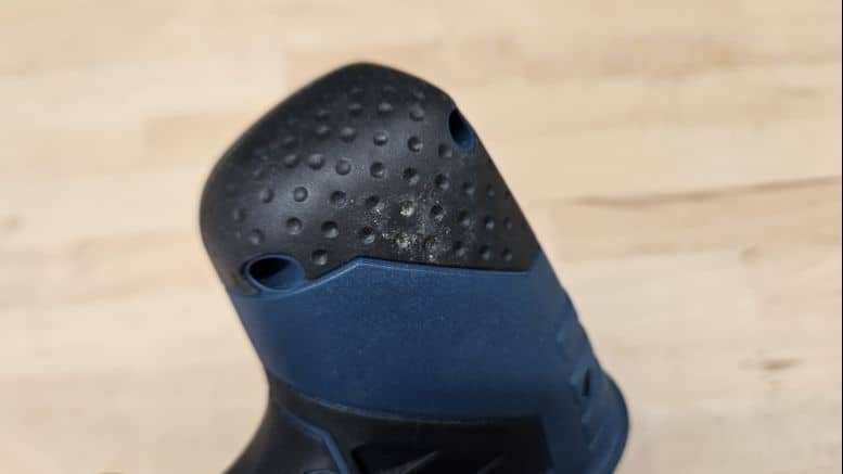 À noter aussi la présence d’une LED orientée vers la zone de coupe et d’un indicateur de charge situé sur la machine — un vrai plus en l’absence d’affichage sur les batteries 12V Bosch.