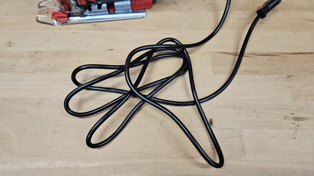 La PST 800 PEL est livrée avec plusieurs accessoires utiles, comme un capot de protection transparent, un guide de coupe pour suivre plus facilement les tracés, un pare-éclats améliorant la visibilité sur la zone de travail, ainsi qu’un rangement intégré pour lames situé à l’arrière. Le câble d’alimentation de 2,5 mètres offre une bonne liberté de mouvement, renforcé par un manchon de protection au point de sortie pour éviter les pliures et assurer la durabilité du cordon.