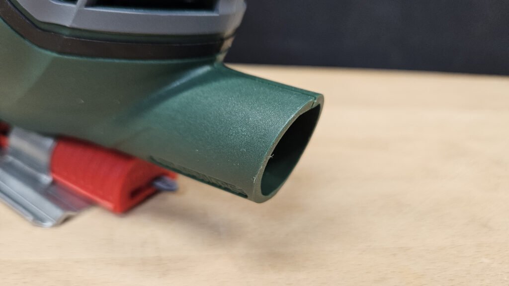 Si vous souhaitez utiliser un aspirateur, il est possible de désactiver la soufflerie et de le raccorder à l’arrière via le conduit dédié afin de travailler plus proprement.