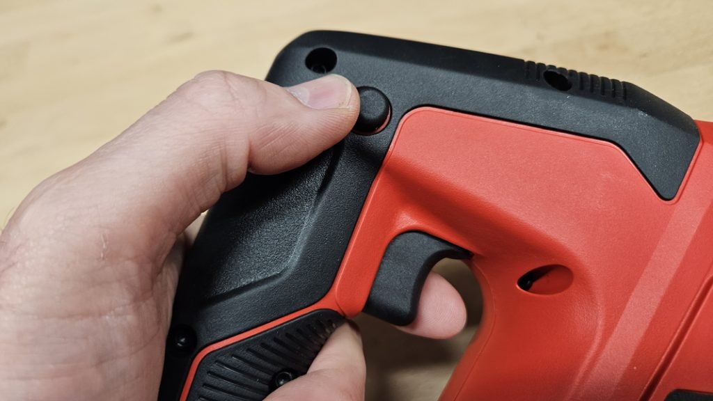 La Einhell TC-JS 18 Li est une scie sauteuse compacte et bien équilibrée, conçue pour rester agréable à manipuler. Avec un poids de 1,7 kg sans batterie, elle se montre légère et maniable, même lors des découpes prolongées. La poignée est recouverte d’un revêtement soft-grip qui améliore l’adhérence et limite la fatigue. Les commandes tombent naturellement sous les doigts, avec une gâchette fluide et un bouton de sécurité bien placé pour éviter les démarrages involontaires. Globalement, la prise en main est intuitive et adaptée à tous les niveaux d’expérience.