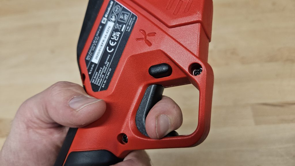 Côté sécurité, le GP-LS 18/28 dispose d’un double verrouillage pour éviter tout déclenchement accidentel. Une LED indique l’état de fonctionnement. Une fois éteint, la lame peut être verrouillée en position fermée. L’ensemble est robuste et inspire confiance.