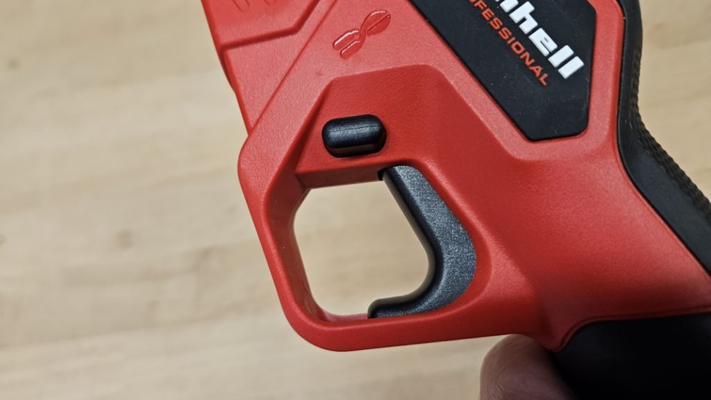 Côté sécurité, le GP-LS 18/28 dispose d’un double verrouillage pour éviter tout déclenchement accidentel. Une LED indique l’état de fonctionnement. Une fois éteint, la lame peut être verrouillée en position fermée. L’ensemble est robuste et inspire confiance.