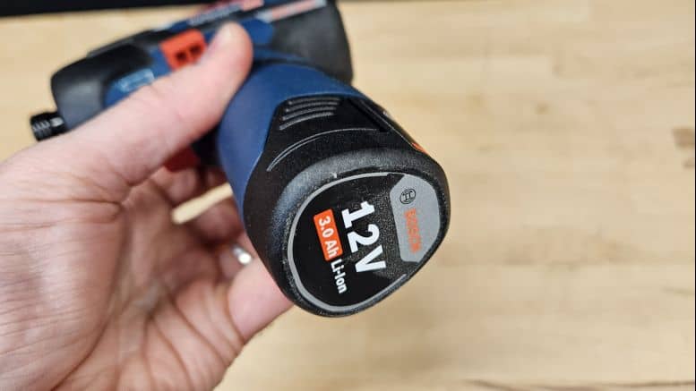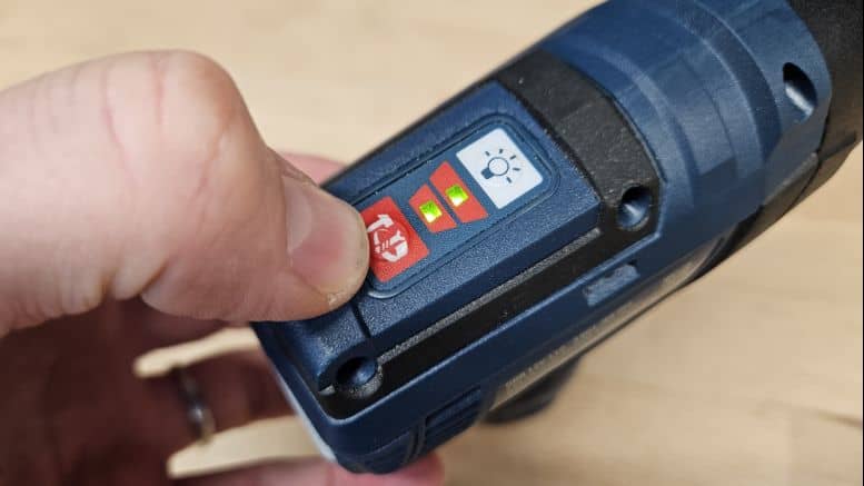 Autre point de confort : l’indicateur de niveau de batterie est intégré à la machine, ce qui compense l’absence de voyant sur certaines batteries 12V Bosch.