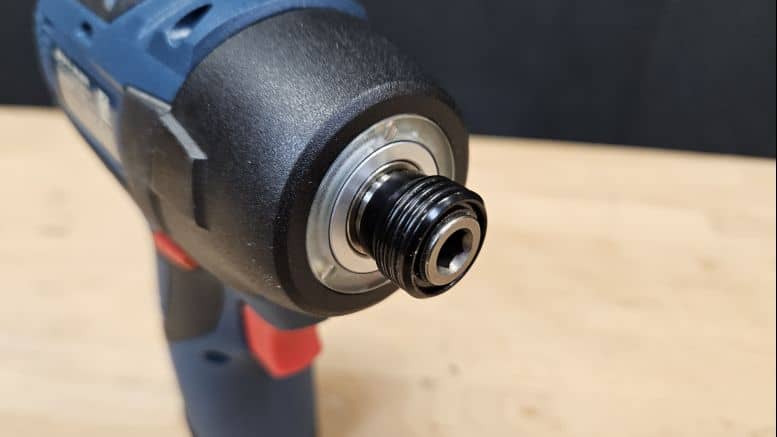 La transition est simple, sans électronique avancée, mais suffisante pour garder la main sur l’intensité du vissage. Le porte-embout est standard avec un verrouillage classique. L’éjection ne se fait pas automatiquement, ce qui demande un geste manuel à chaque changement.