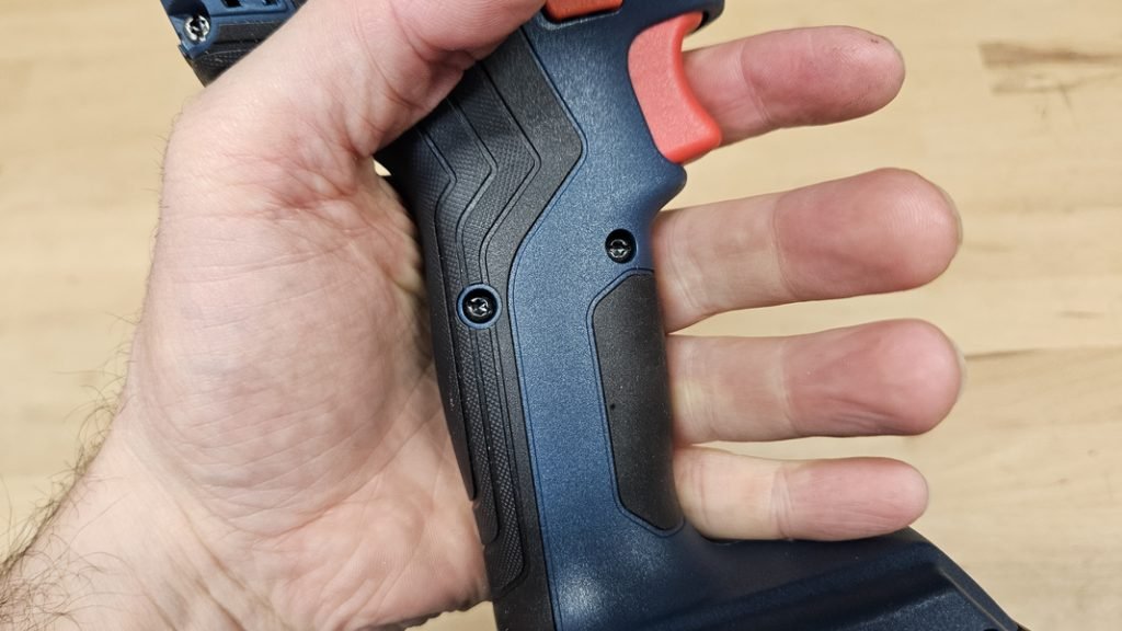 La Bosch GDR 18V-200 ne mesure que 126 mm de long pour un poids de 1,05 kg sans batterie. Cette compacité en fait une alliée précieuse dans les espaces confinés, comme l’intérieur d’un meuble ou sous une charpente. La poignée recouverte de grip antidérapant assure une excellente tenue, même après de longues sessions de travail. Les commandes tombent naturellement sous les doigts : l’inverseur de sens est précis, et la gâchette progressive permet de doser la vitesse en fonction du vissage. Des renforts en gomme sur le boîtier offrent une protection supplémentaire en cas de chutes.