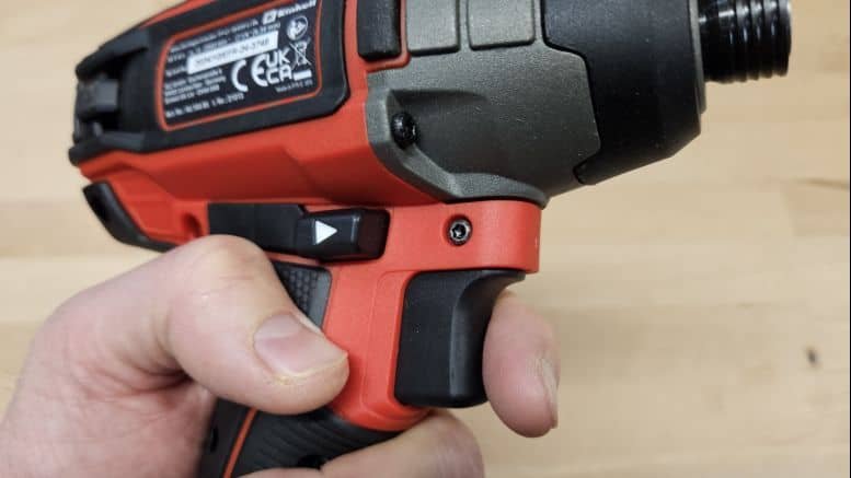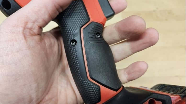 La gâchette et le bouton d’inverseur de sens tombent naturellement sous les doigts, y compris avec des gants. On apprécie également les nombreux renforts en caoutchouc présents sur le corps de la machine, gage de protection en cas de chute.