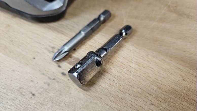 Autre petit plus pratique : la zone magnétique intégrée, qui permet de garder quelques vis ou embouts à portée de main.