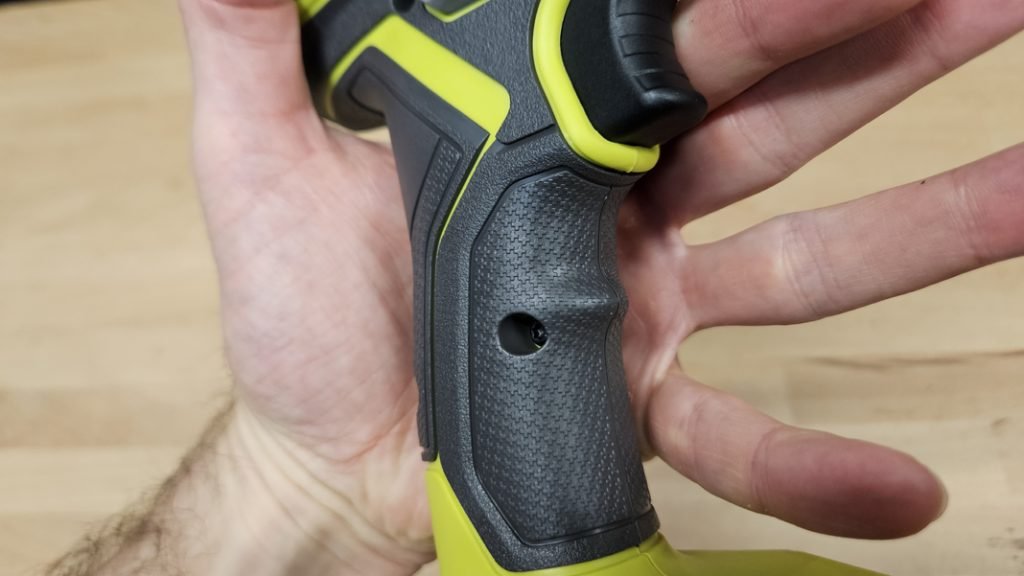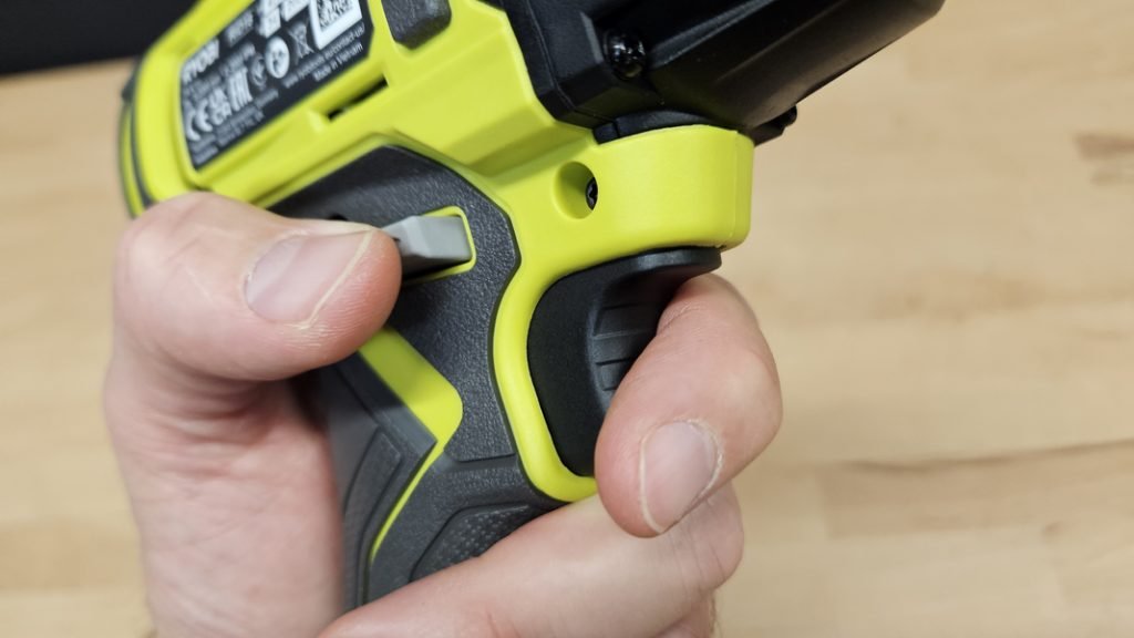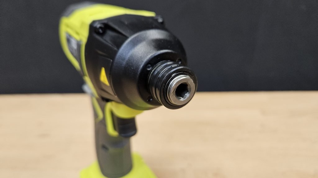 Le porte embout de la Ryobi RID18-0 adopte un mécanisme simple et efficace, puisqu’il suffit d’insérer l’embout et de tirer la bague pour le verrouiller. Pour le retirer, un simple geste inverse suffit. L’utilisation d’embouts dotés d’encoches est recommandée afin d’assurer un maintien parfait pendant les vissages.