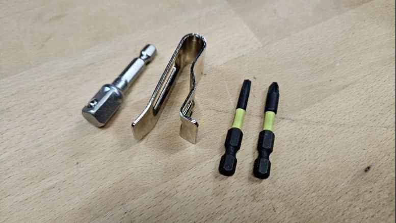 Le porte-embout 1/4″ avec système de verrouillage automatique est très pratique. L’embout tient bien en place, et pour le retirer, un simple tirage sur la bague l’éjecte proprement. Deux embouts fournis (Torx et PZ) permettent de démarrer sans achat complémentaire immédiat.